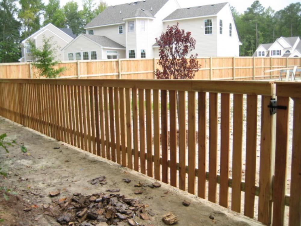 A 4' picket fence with capboard compliments the functionality of a picket fence with a sleek capboard, preventing pickets from protruding over the posts. This style is perfect for any yard.