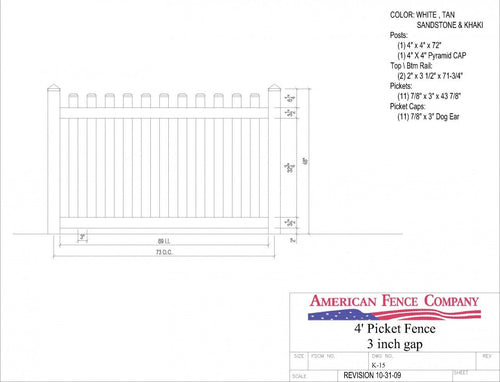 A 4' picket vinyl fence provides a classic yet cordial addition for your yard. The 3" gaps between pickets on this vinyl fence allows for visibility while maintaining a barrier for larger animals and dogs, and also preventing children from straying.
