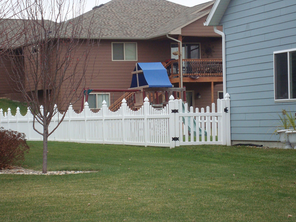 A 4' underscallop vinyl picket fence provides the same functionality as a standard vinyl picket fence, with the added touch that only a scallop could provide. Each picket on this vinyl fence is cut to the correct height in order to ensure a seamless grade above the top rails.