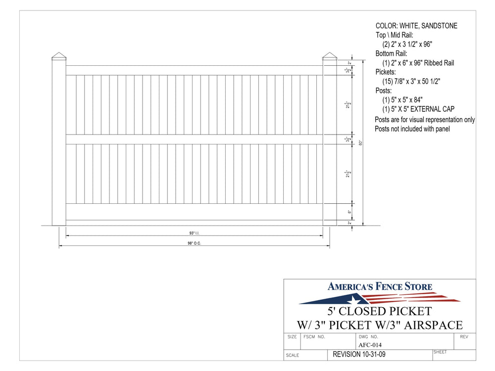 5' Vinyl Closed Picket w/ 3" airspace AFC-014