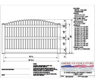 A 5' overscallop vinyl picket fence provides the same functionality as a standard vinyl picket fence, with the added touch that only a scallop could provide. Each picket on this vinyl fence is cut to the correct height in order to ensure a seamless grade above the top rails.