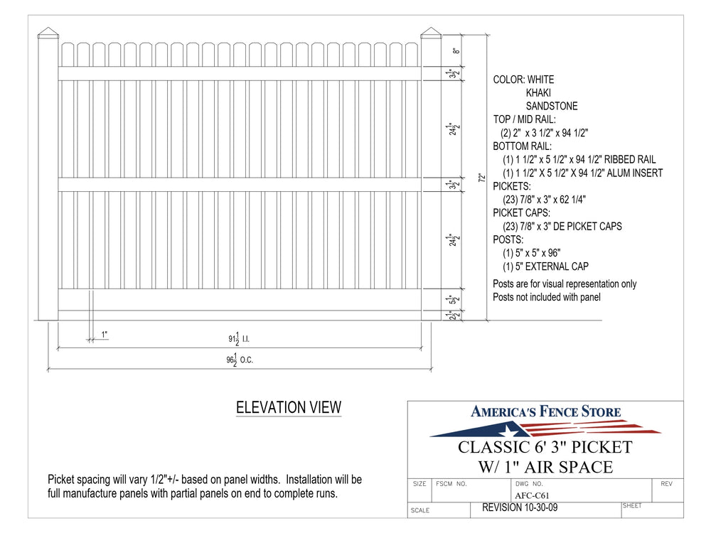 6' Vinyl Picket AFC-C61
