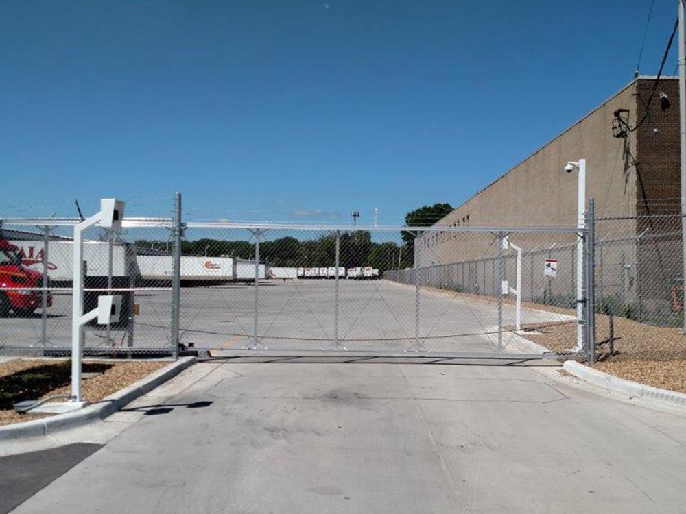 Cantilever gates are an excellent choice for storage issues. The gate takes up little space as it stores up against an adjoining fence line. Unlike a large swing gate where you must keep the entire area clear where the gate sweeps closed or open; a cantilever gate has a very small footprint. A cantilever gate's overall length is usually one and a half the distance of the opening. So, if you have a 30’ opening; your gate is 45’ overall. You must account for this space along the fence where the gate stores. Aluminum cantilever gates use an aluminum square frame with an extruded track at the top. Trucks or trolleys are installed so that the trucks run inside the track to support the gate from the support posts. At the bottom, there are two guide wheels that keep the gate plumb and centered. Steel cantilever gates are very reliable and economic. Aluminum cantilever gates are definitely lighter, the rollers are enclosed and a great platform for an ornamental look. The enclosed track system is a much smoother operation during snow and ice storms. *Please note that the gate picture represents a custom gate. Please refer to the style drawing for a more accurate representation of your gate.